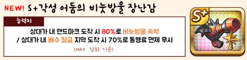 우선 어둠의 비눗방울 장난감 능력은 상대가 내 랜드마크 도착 시 70%로 비눗방울 속박/ 상대가 내 배수 잠금 지역 도착 시 65%로 통행료 면제 무시 능력을 가지고 있고 각성의 경우에는 속박 확률이 70% → 80%, 통면이 65% → 70%로 증가한 수치입니다.