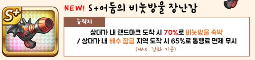이 외에도 소환서 1 ~ 3까지 획득시 S+ 베스트 6종 뽑기권, 소환서 1과 소환서 2 2개를 수집하면 S+ 인기 행템 15종을 획득해보실 수 있는데요. 두 뽑기권에서 모두 신규행템 어둠의 비눗방울 장난감이 나오지 않는답니다.