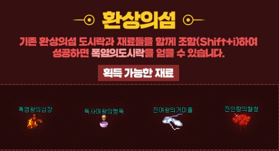 그럼 이제부터는 획득해보실 수 있는 보상에 대해서 알아볼게요. 우선 환상의 섬에서는 폭염왕의 심장, 독사여왕의맹독, 진여왕의 거미줄, 진인랑의 혈청/ 용궁에서는 혈마정화의방패 제작 재료인 아귀 장군의 심장/ 지옥에서는 혈마뱃사공의목걸이 제작 재료인 마루투스의 심장/ 일본에서는 혈마수리검의 제작 재료인 파괴왕의 심장/ 중국에서는 혈마흑영패도 제작 재료인 산소괴왕의 심장을 획득해보실 수 있습니다.