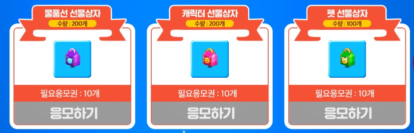 이 응모권을 획득하신 후에 크아 홈페이지에 가신 후에 크아 달력, 물풍선 선물 상자, 캐릭터 선물상자, 펫 선물 상자에 응모해보실 수 있어요. 그러니 플레이하시면서 응모권이 있다면 한 번 참여해보시는 것이 좋을 것 같아요.