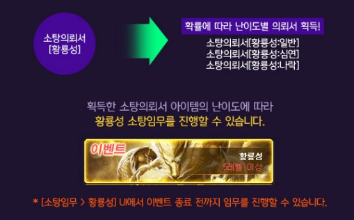 이렇게 받으신 황룡성 소탕임무를 완성하시게 되시면 신수 분신 제작 재료인 정령의 보석과, 채괄 물약을 확정적으로 획득이 가능하고, 또 확률상으로 신수분신 상자도 얻어보실 수 있다고 하니 매일매일 받아보시는 것이 좋을 듯 합니다.