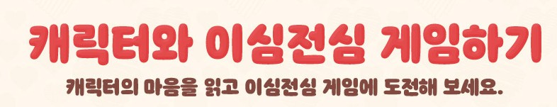 캐릭터의 마음을 읽고 이심전심 게임에 도전해 보세요.