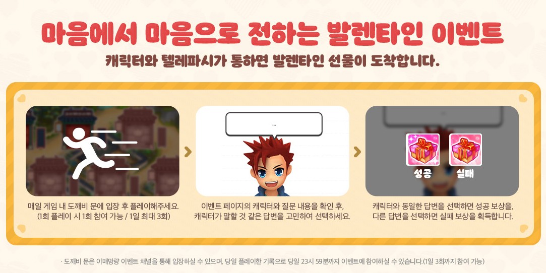 여기까지 테일즈런너의 발렌타인데이 이벤트 이심전심 게임이벤트에 대해서 알아봤습니다.