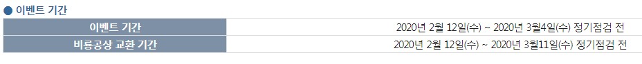 이벤트 기간은 2020년 2월 12일부터 2020년 3월 4일 정기점검 전까지입니다.
