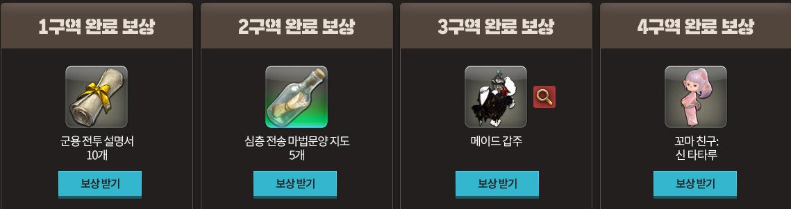 - 1구역 완료 보상 : 군용 전투 설명서 10개