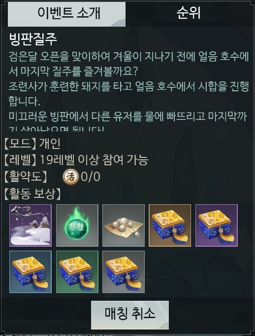매일 빙판 질주에 참여하면 다양한 보상과 "매향설"을 획득도 할 수 있으니 미니게임인 빙판 질주 매일 해야겠습니다.