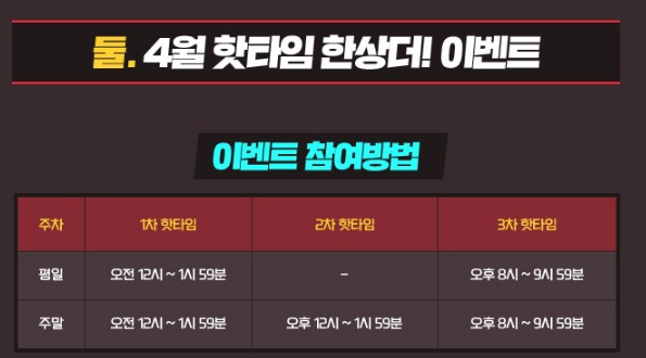출석 이벤트에 대해서 알아보았으니 다음으로 4월 핫타임 한상더! 이벤트에 대해서 알아볼게요!