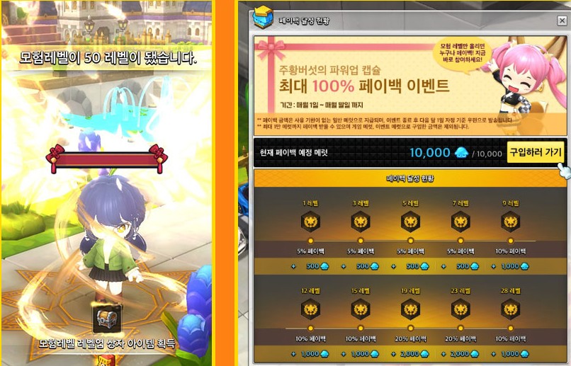 3. 이벤트 기간 동안 열심히 모험 레벨 올려 페이백 금액 높이기!