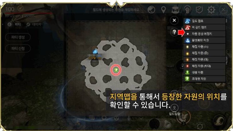 3. 맵 곳곳에 있는 자원을 길드 자원 캠프에 모아보자!