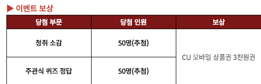 청취 소감 50명,주관식 퀴즈 정답 50명을 추첨으로 총 100명을 뽑아서