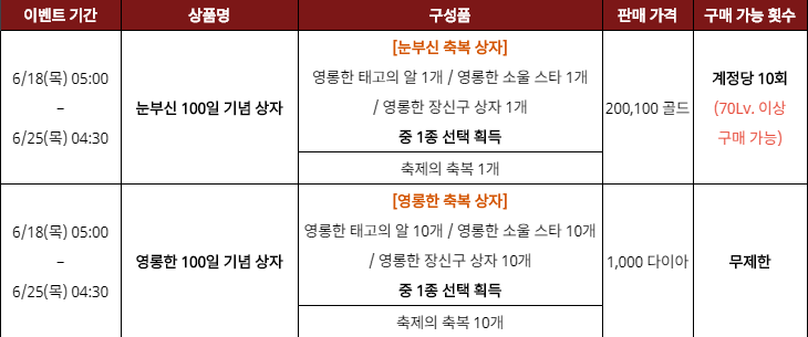 눈부신 100일 기념상자와는 다르게 구매 레벨제한이 없습니다.