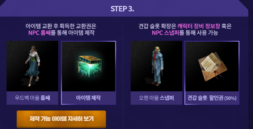 ●아이템 교환 후 획득한 교환권은 NPC 롬쌔를 통해 아이템 제작