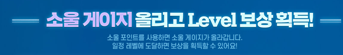소울 포인트를 사용하면 소울게이지가 올라가고, 일정레벨에 도달하면 보상을 획득!