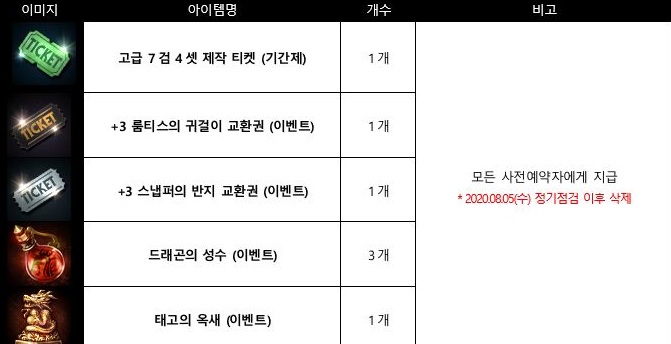사전예약 보상 상자 사용 시 +3 룸티스의 귀걸이 교환권 1개를 획득하실 수 있습니다.