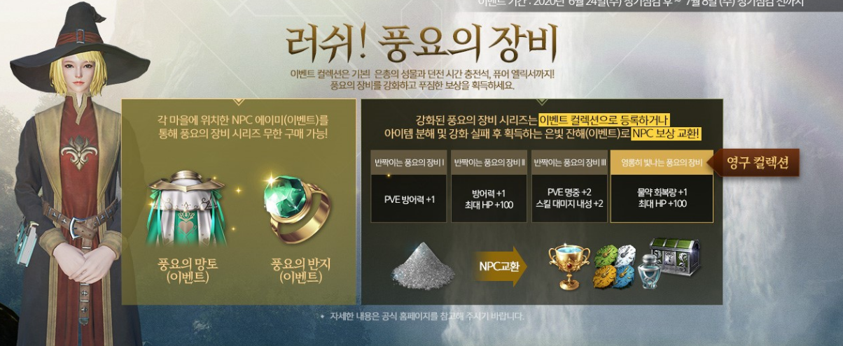 이벤트 기간은 2020년 6월 24일 수요일 정기점거 후~ 7월 8일 수요일 정기점검 전까지 입니다.