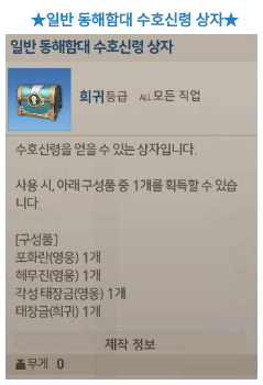 일반 동해함대 수호신령 상자를 제작할 수 있는 동해함대의 인장을 지급해 드리는 이벤트를
