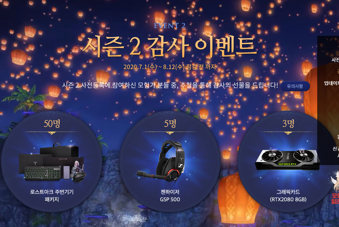 시즌2 사전등록에 참여하신 모험가 분들 중, 추첨을 통해서 감사의 선물