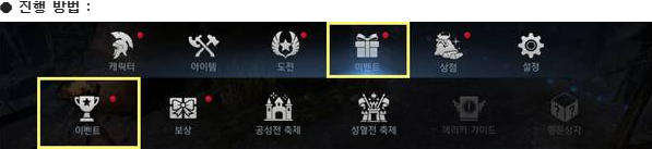 메뉴>이벤트>이벤트 메뉴를 선택해서 이벤트에 참여하시면 됩니다.