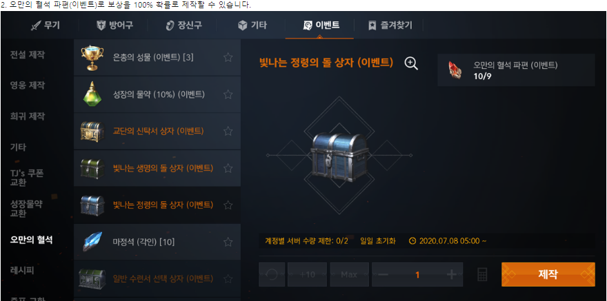 빛나는 정령의 돌 상자 - 오만의 혈석 파편 9개 매일 2회