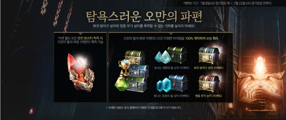 이번 이벤트의 주제는 탐욕스러운 오만의 파편 이벤트입니다.