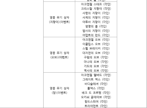 한손검 , 이도류,단검, 활 ,지팡이, 오브 ,창 무기 상자를 선택 하실 수 있는데