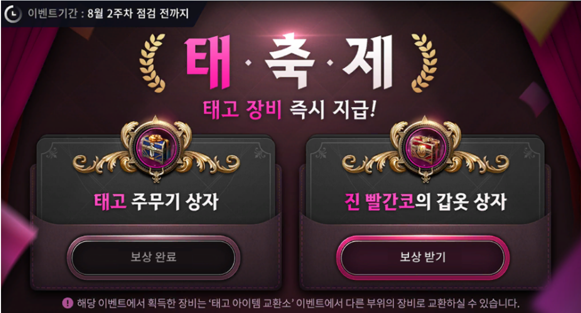 이벤트 기간은 7월2 주차 업데이트 점검 후~ 8월 2주차 업데이트 점검 전까지 입니다.