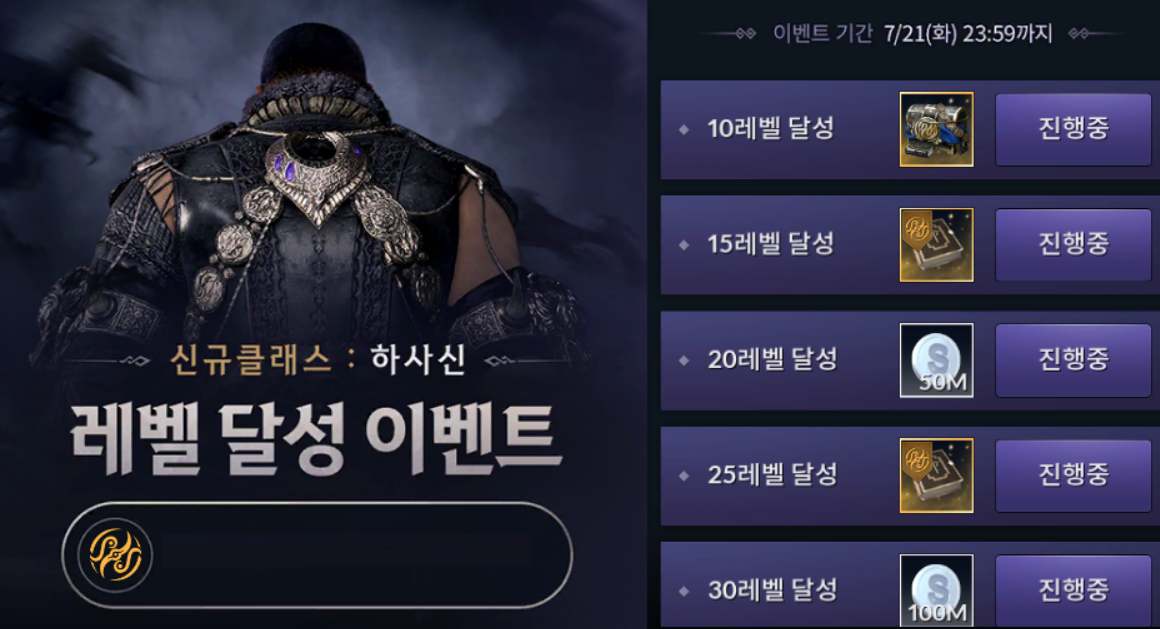 이벤트의 주제는 하사신 레벨 달성 이벤트 입니다.