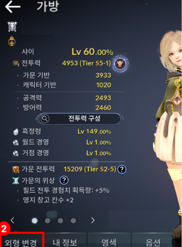 외형 변경권을 사용하고, 내 정보 or 가방 창에서 외형 변경 버튼을 클릭한다