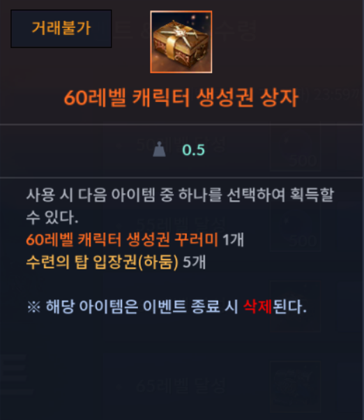 60레벨 달성 - 60레벨 캐릭터 생성권 상자
