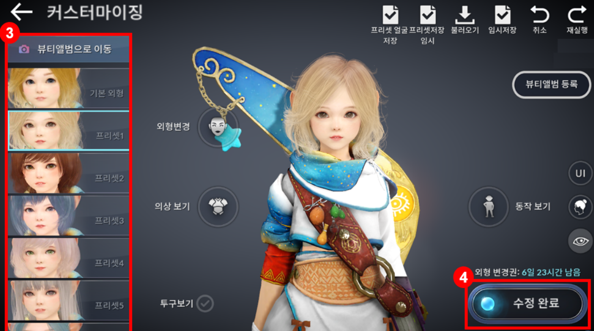 60레벨 캐릭터 생성 꾸리미의 구성품인 외형 변경권을 사용하는 방법입니다.