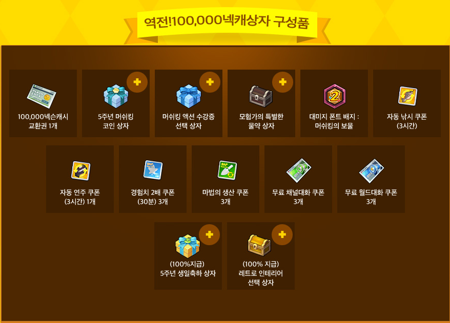 -> 넥슨 캐시에 당첨되지 않더라도 랜덤 아이템 1개와 5주년 생일축하 상자와