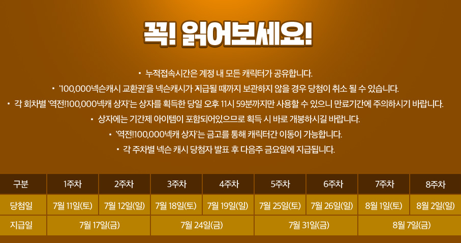역전 100,000넥캐 상자가 지급