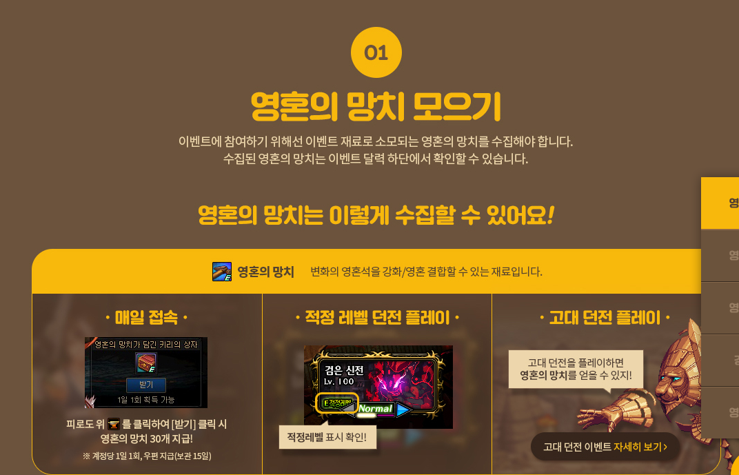 이벤트에 참여하시려면 이벤트 재료로 소모되는 영혼의 망치를 수집하고 수집된 영혼의 망치는 이벤트