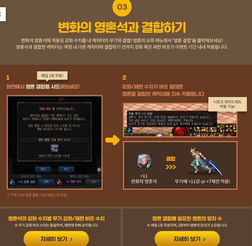 이벤트 기간이 종료된 후 단 2주 변화의 영혼석의 강화 수치에 비례해서 무기에 강화 혹은
