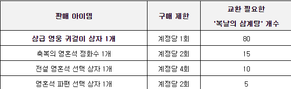 복날의 삼계탕으로 상급 영웅귀걸이 상자를 교환할 수 있는 이벤트라고 합니다.
