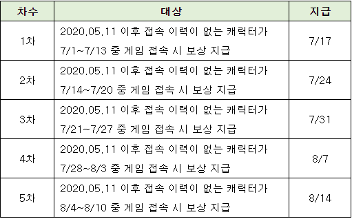 보상지급 이전에 캐릭터를 삭제하시면 보상이 지급 불가능 합니다.