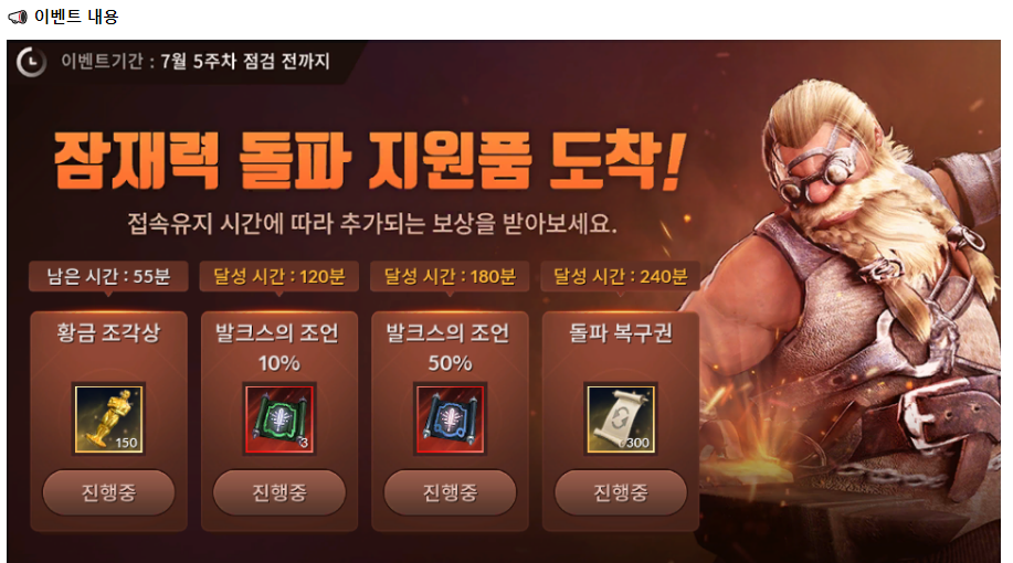 이벤트 기간은 7월4주차 업데이트 점검 후~ 7월5주차 업데이트 점검 전까지 입니다.