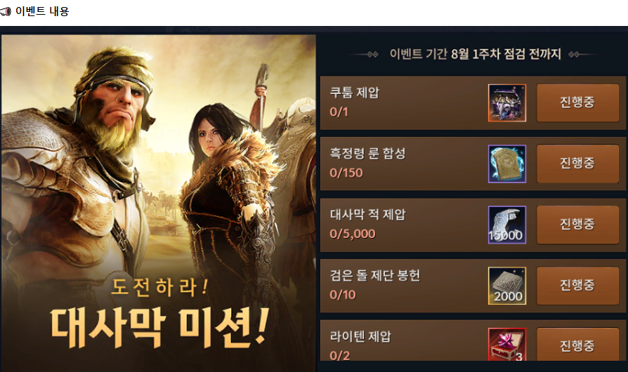 이번 이벤트는 도전하라! 대사막 미션 이벤트 입니다.