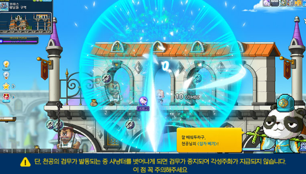레벨 범위 몬스터가 등장하는 사냥터에 입장을 하시면, 천공의 검 스킬이 자동으로 활성화가 되며,