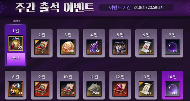 이번 두 번째 이벤트는 주간 출석 이벤트입니다.