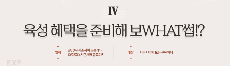 네 번째 이벤트는 육성 혜택을 준비해 보WHAT썹 이벤트입니다.