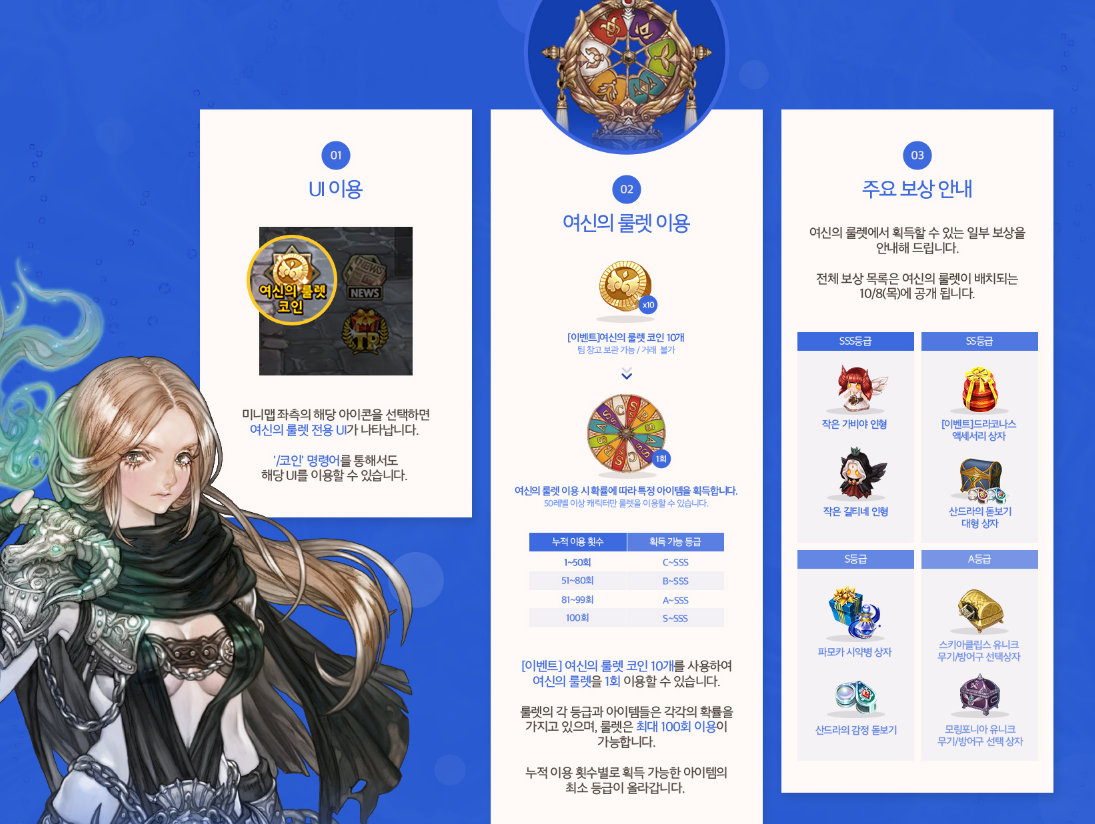 이벤트 기간동안 콘텐츠 참여하여 접속 등으로 여신의 룰렛 코인을 모으시면 됩니다.