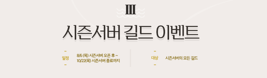 세 번째 이벤트는 시즌서버 길드 이벤트입니다.