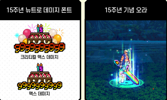 크리티컬 맥스 데미지,맥스 대미지 ,15주년 기념오라가 있습니다.