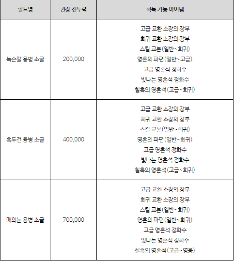 아이템으로 교환하고, 이벤트 던전에서 동일한 전투력의 몽환의 틈 지역보다 더 많은 경험치를 획득