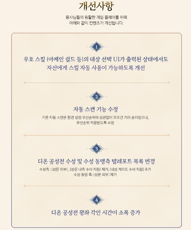 용사님들의 효율적인 플레이를 위해서 업데이트가 되었다고 합니다.