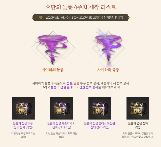 이벤트 기간은 2020년8월19일 수요일 정기점검 후~2020년 9월2일 수요일 정기점검 전까지 입니다.