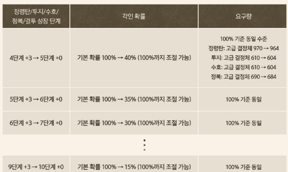 정령각인 일부 단계에서 레벨 각인 확률 및 필요한 재료의 수량을 조정할 수 있도록