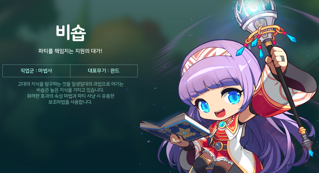 우선 비숍은 마법사여서 방어력도 약하고 HP도 적지만 스킬에 체력 대신 MP가
