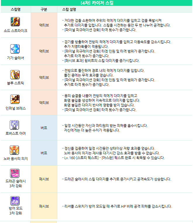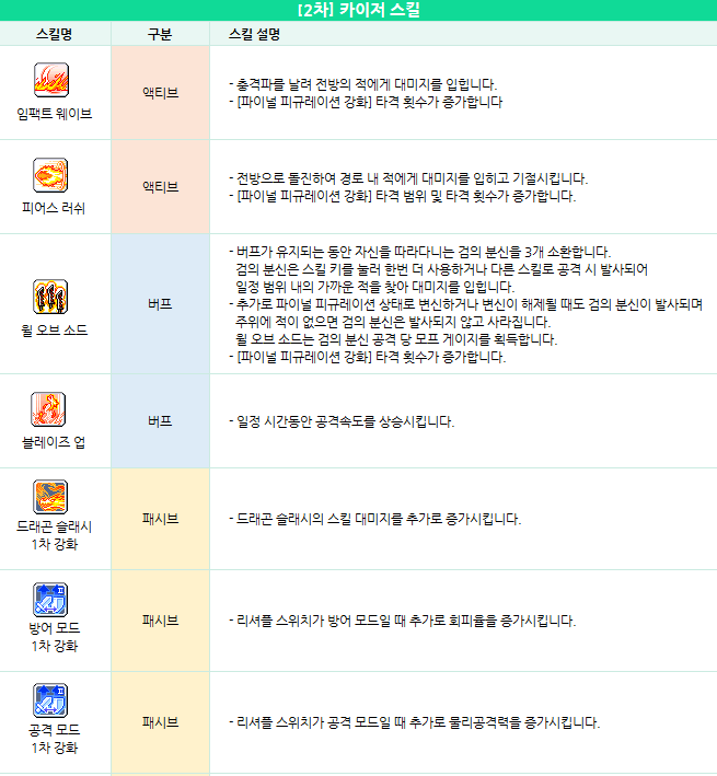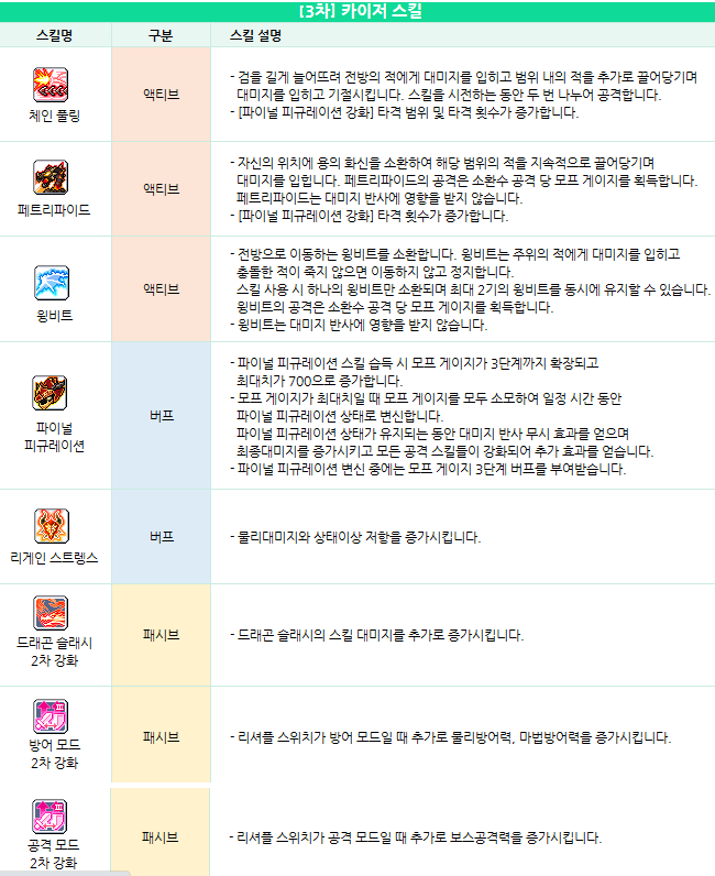자 이렇게 간단하게 메이플스토리m의 카이저 스킬과 하이퍼